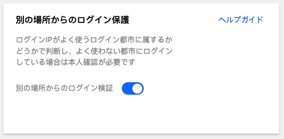 別の場所からのログインとは、アカウントのログインIPアドレスが常用ログイン都市ではないことを指します。別の場所からのログイン保護を有効化した後、システムはログインのIPアドレスが常用ログイン都市に所属するかどうかに基づいて判断します。もしアカウントが常用都市ではない都市でログインした場合、身元認証を行う必要があります。