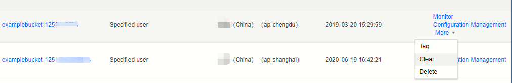 1. COSコンソールにログインし、左側ナビゲーションバーのバケットリストをクリックし、バケットリストページに進みます。 2. 削除したいバケットを見つけ、その右側の操作バーの下にあるその他>削除をクリックします。