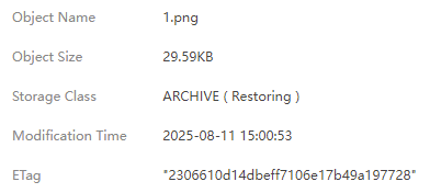 8. オブジェクトが正常に復元されると、その詳細ページからオブジェクトにアクセスし、ダウンロードし、ストレージタイプを変更できます。
