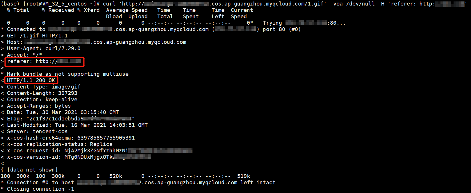 curl 'http://bucket-appid.cos.ap-guangzhou.myqcloud.com/object' -voa /dev/null -H 'referer: Refererの値'