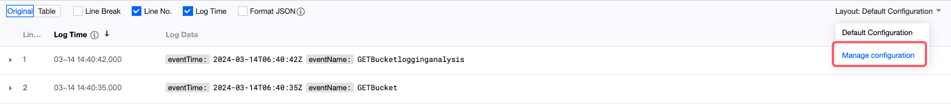 1.2 デフォルトでログデータをオリジナルの形式で表示します。コンフィグレーションのカスタマイズをサポートします。