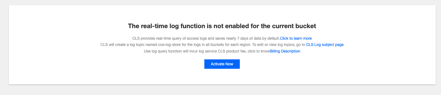 5. ログ検索ページで、現在のストレージバケットでリアルタイムログ機能がオンになっていない場合は、今すぐオンにするをクリックして使用します。