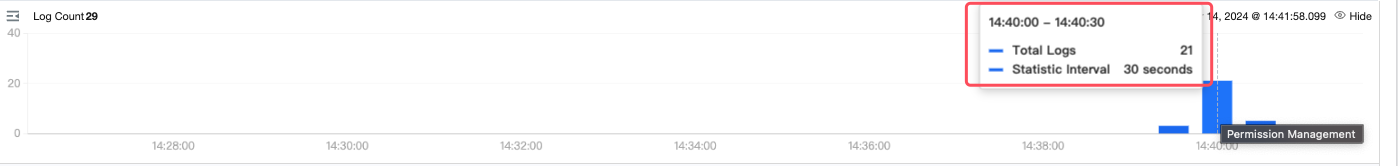 1.1 現在の検索条件で、指定された時間範囲内のログ統計を棒グラフで表示することをサポートします。