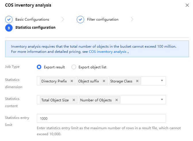 統計ディメンション:ディレクトリのプレフィックス、オブジェクトのサフィックス、ストレージタイプを選択できます。