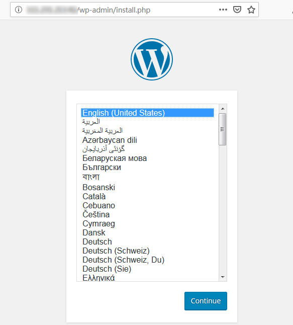 サービスは成功的に作成されました。サービスにアクセスする時、直接にWordPressサーバーの構成ページに入ります。下図の通りです:
