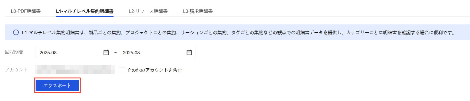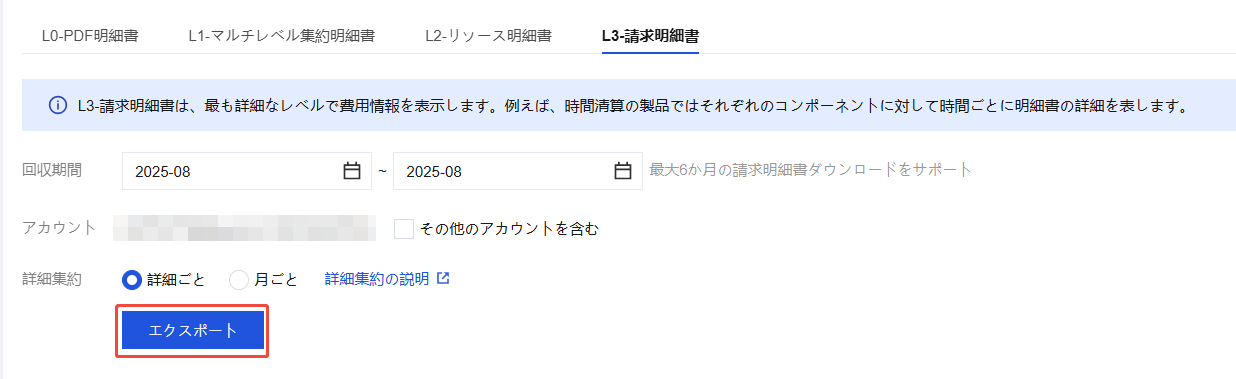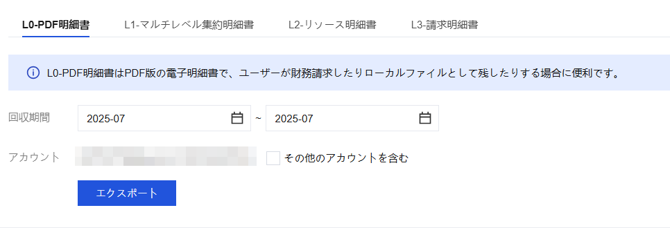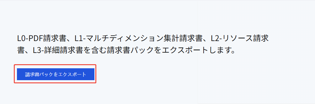 ダウンロードパッケージは、L0-PDF請求書、L1-マルチディメンション集計請求書、L2-リソース請求書、L3-請求明細書という四つのレベルのすべての請求書データを含む請求書パッケージです。