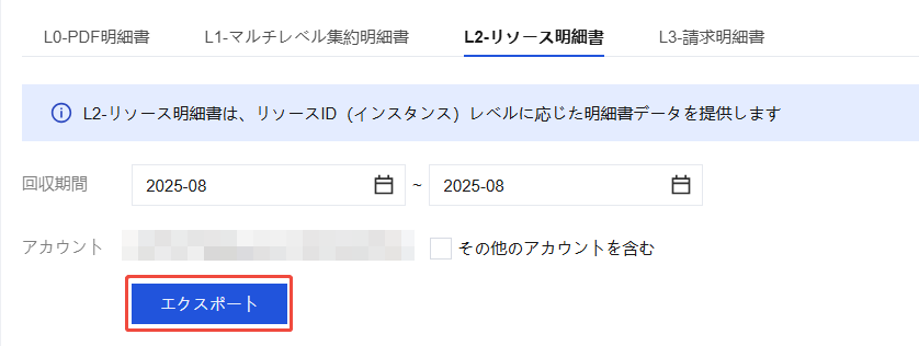 3、システムはサブアカウントを含む L2-リソース請求書のダウンロードもサポートしています。