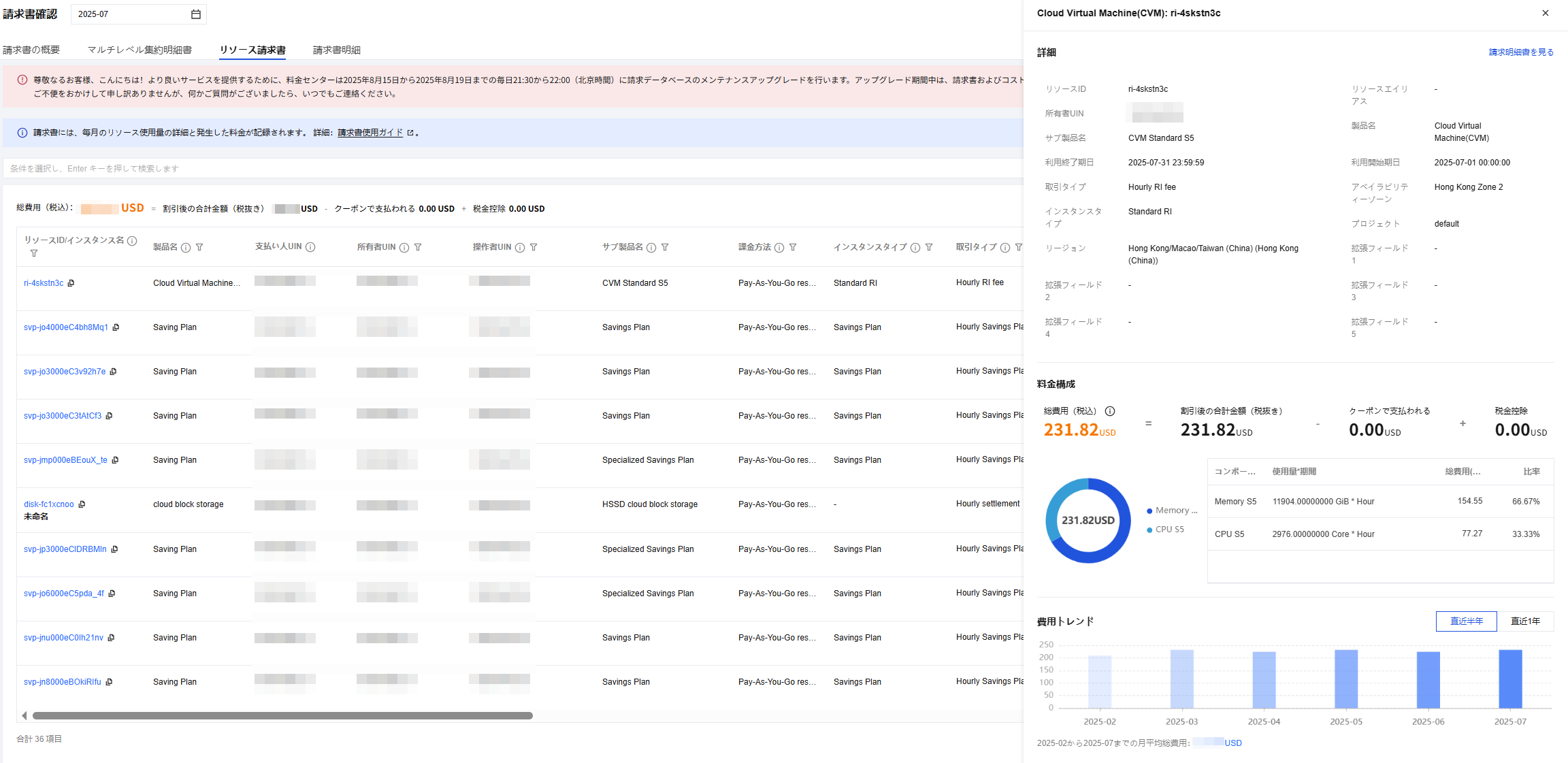 リソースの請求書はリソースIDの次元で集計された請求金額であり、より豊富な明細データを提供し、クラウド上の料金を詳細に把握することを支援します。