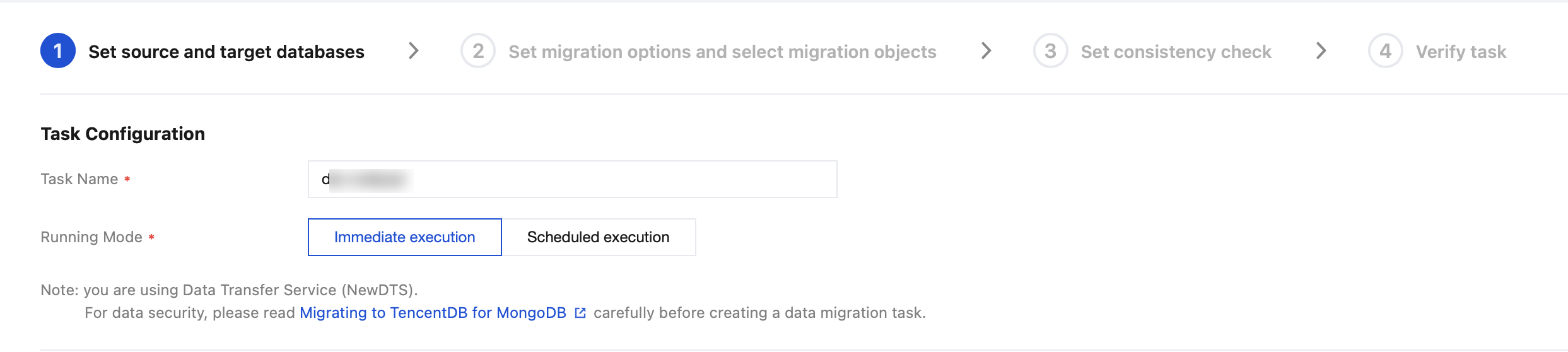 Task Name | Set it to Name After Creation. The task name is the same as the task ID by default. After the migration task is created, the task name can be reset. Set it to Name Immediately. Enter the task name in the input box below. |