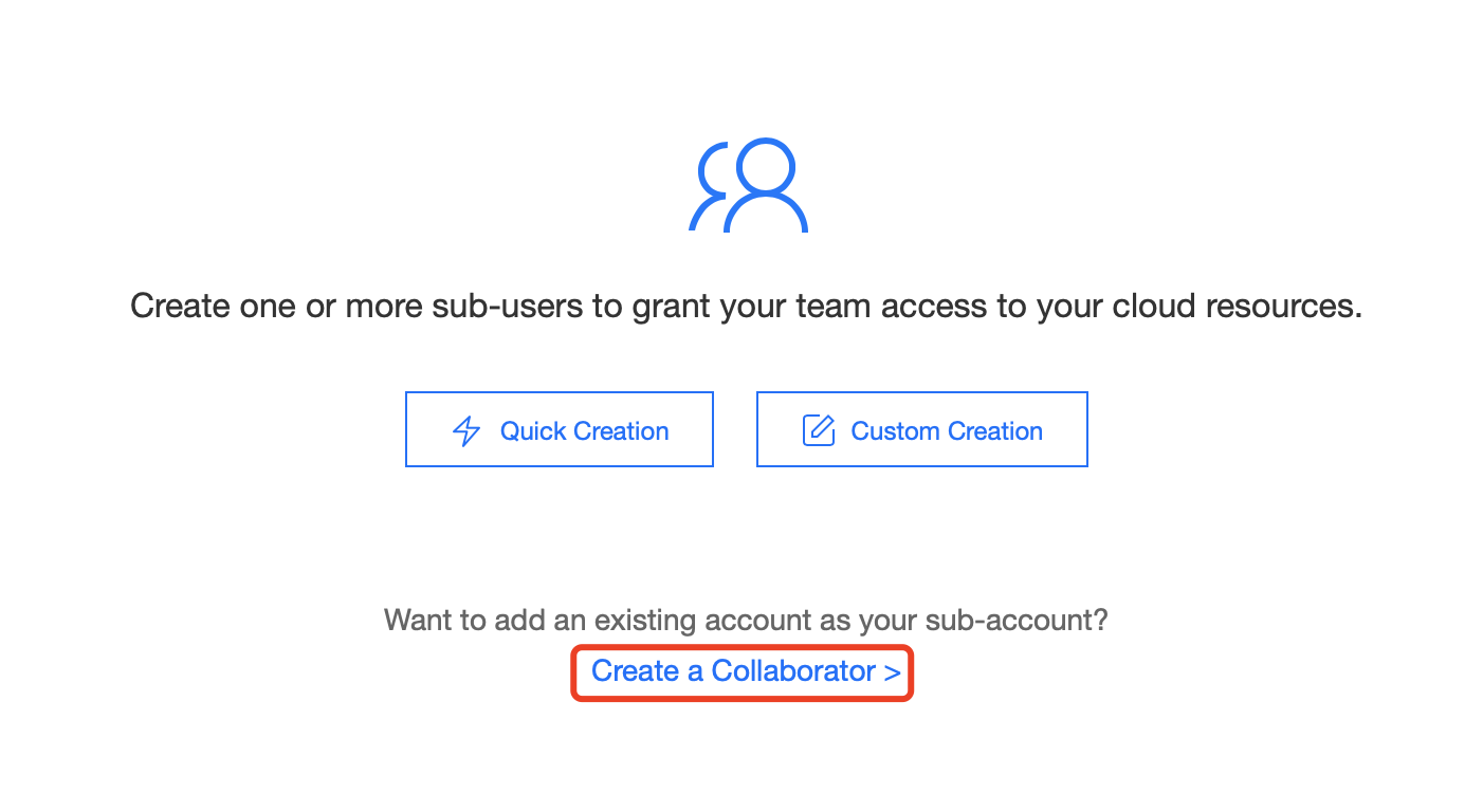 コラボレーターとサブユーザーはどちらもサブアカウントに属します。関連する定義と権限の説明については、ユーザータイプを参照してください。 前提条件