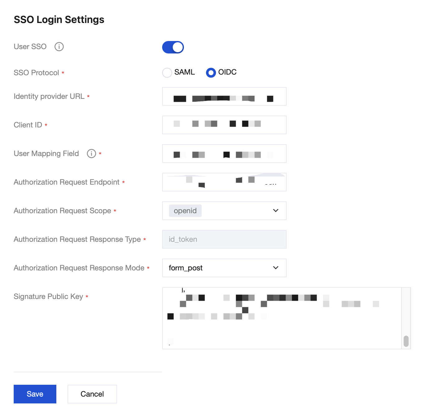 4. ユーザーSSOの後のスイッチボタンをクリックすると、ユーザーSSOを有効化または無効化できます。