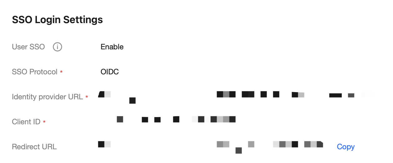 Tencent Cloudから取得したRedirect URLを企業IdPに入力します。