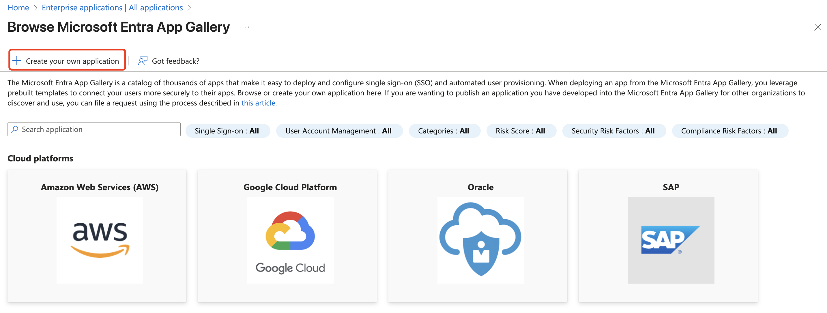 5. 右側に表示されるポップアップウィンドウで、アプリケーションの名前を入力し、ギャラリーに存在しない他のアプリケーション(非ギャラリー)の統合を選択します。
