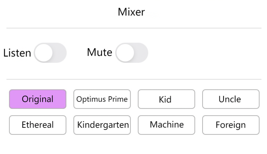public abstract class ITMGAudioEffectCtrl{public static int VOICE_TYPE_ORIGINAL_SOUND = 0;public static int VOICE_TYPE_LOLITA = 1;public static int VOICE_TYPE_UNCLE = 2;public static int VOICE_TYPE_INTANGIBLE = 3;public static int VOICE_TYPE_DEAD_FATBOY = 4;public static int VOICE_TYPE_HEAVY_MENTAL = 5;public static int VOICE_TYPE_DIALECT = 6;public static int VOICE_TYPE_INFLUENZA = 7;public static int VOICE_TYPE_CAGED_ANIMAL = 8;public static int VOICE_TYPE_HEAVY_MACHINE = 9;public static int VOICE_TYPE_STRONG_CURRENT = 10;public static int VOICE_TYPE_KINDER_GARTEN = 11;public static int VOICE_TYPE_HUANG = 12;public abstract int SetVoiceType(int voiceType);}
