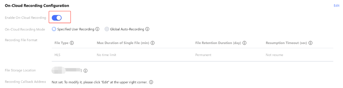 1. 【アプリケーション管理】をクリックして、クラウドレコーディングの設定を変更したいアプリケーションを選択し、対象のアプリケーションがある行の【機能設定】をクリックします。 2. 【機能設定】>【クラウドレコーディング設定】で、右側の【編集】をクリックしてクラウドレコーディング設定の変更画面に入ります。