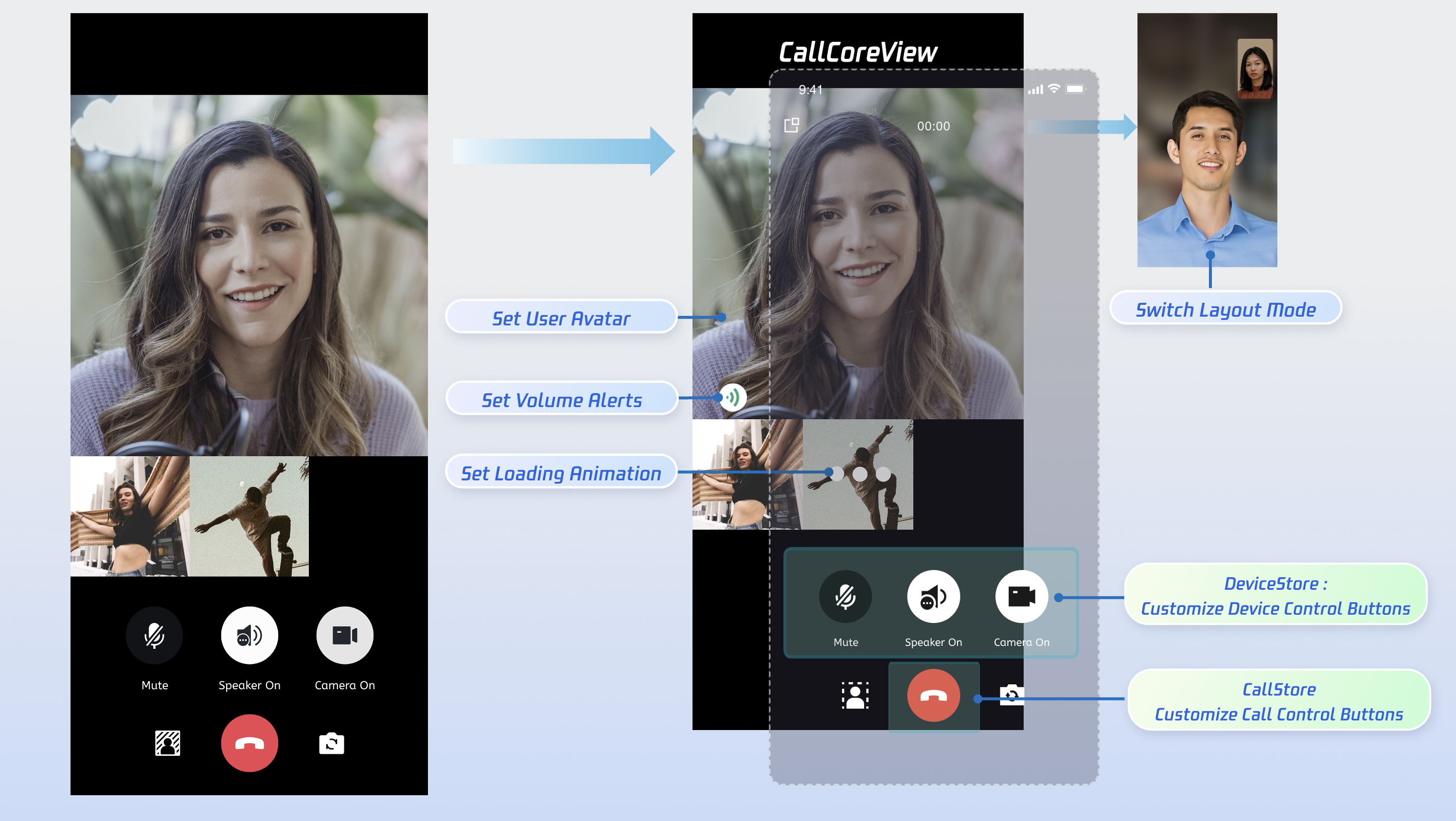 Core UI component for calls. Automatically observes CallStore data and renders the interface, switching layouts between 1v1 and group calls as needed. | |
