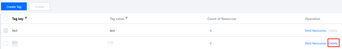 もしTagがクラウドリソースにバインドされている場合は、まずTagをアンバインドしてください(リソースをアンバインドしてから5分後に初めてTagを削除できます) 操作手順