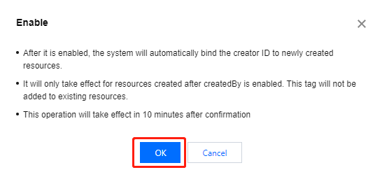 作成者Tagが有効化された後、ユーザーがリソースを作成する時(作成者Tag機能をサポートするクラウドリソースに限定される)、Tagシステムは自動的にそのユーザーのリソースに作成者Tagをバインドします。
