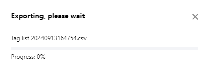 をクリックし、ダウンロードするTagキーにチェックを入れ、右側のをクリックし、エクスポートする範囲としてフィルタリングされたTagのみを選択し、確定をクリックしてダウンロードを完了します。 3. ダウンロード中に、現在のデータダウンロード進捗状況が表示されます。