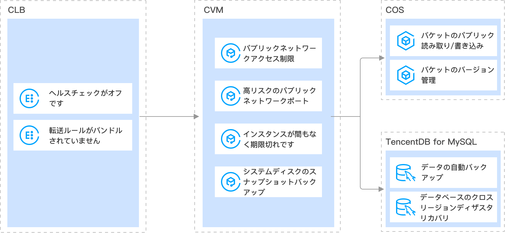 各項目の評価結果を対象に、長年の顧客サービスで蓄積されたTencent Cloudのベストプラクティスを結合させて、システム最適化のための助言を行い、お客様の業務の連続性向上をご支援いたします。