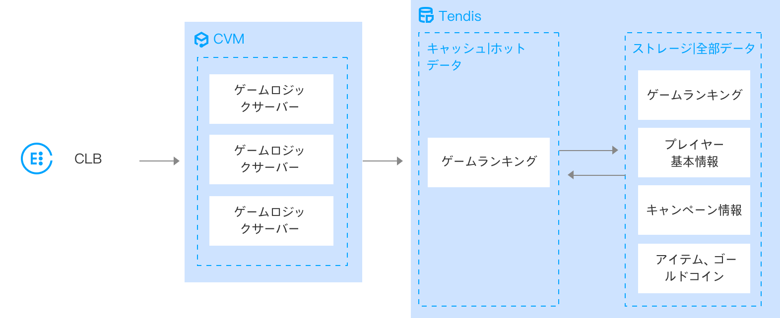 ゲームサービスのデータには通常、大量のプレイヤーデータが保存されていますが、膨大な記憶容量のTencentDB for Tendisを使用することで、オンラインでアクティブなプレイヤーデータは継続的にメモリにキャッシュされており、しばらくログインしていないプレイヤーデータはメモリから解放され、プレイヤーがオンラインになると自動的にデータがキャッシュされ、コストが大幅に削減されます。また、サービスは、サービス内でキャッシュとストレージを交換するというロジックを処理する必要がなく、Redisにアクセスするだけでよいため、バージョンのイテレーション効率が大幅に向上します。