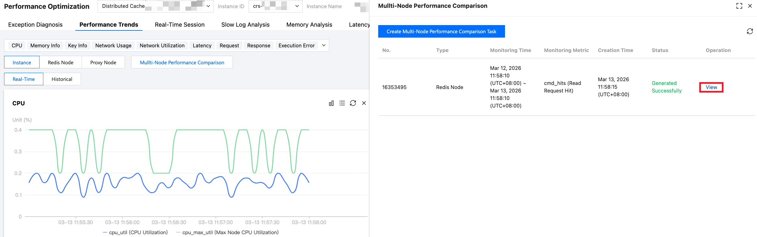 | | Max Node CPU Utilization | cpu_max_util | % | Maximum CPU utilization of nodes (shards or replicas) in the instance. |