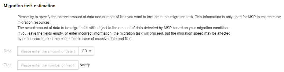 Task name: 1 to 60 characters ([a-z], [A-Z], [0-9] and [_]). You can use this name to view the migration status and progress in the task list. 3. Task size estimation. Please accurately fill in the task size so that Tencent Cloud can better prepare resources. This field is optional.