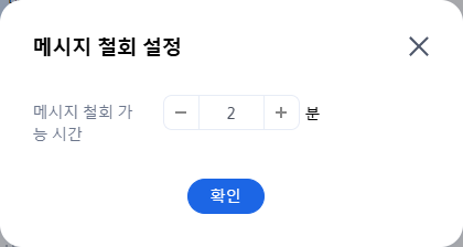 2. 메시지 회수 설정 팝업 창에서 메시지를 회수할 수 있는 시간을 설정합니다.