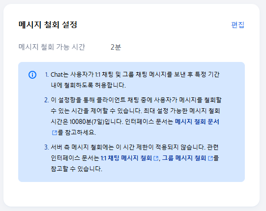 1. 로그인 및 메시지 페이지에서 메시지 회수 설정 우측의 편집을 클릭합니다.
