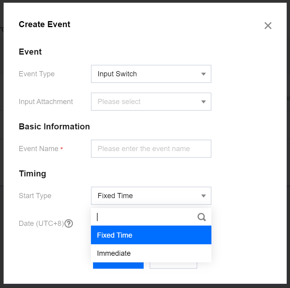 Start Type: Fixed Time 또는 Immediate를 선택합니다. Fixed Time: 지정된 시간(UTC)에 이벤트를 실행하며, 이벤트 구성 시간보다 10초 이상 늦어야 합니다. Immediate: 이벤트를 즉시 실행합니다.