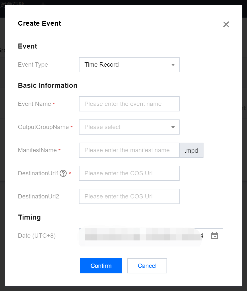 DestinationUrl: 파일을 저장할 COS 주소를 입력합니다.
