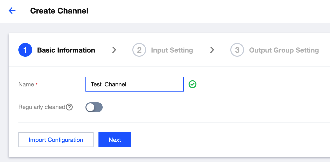 4. 왼쪽 사이드바에서 Channel Management를 클릭하고 Create Channel을 클릭합니다. Basic Information 단계에서 채널 이름을 입력합니다.