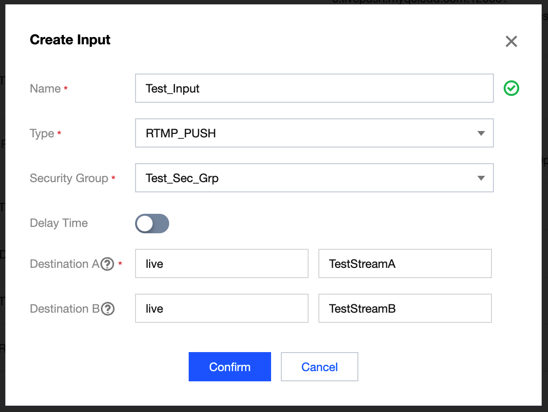 3. Confirm을 클릭합니다. Input 목록에서 생성한 Input을 찾아 세부 정보 페이지로 들어갑니다. 나중에 사용할 수 있도록 푸시 Destination을 기록해 둡니다.