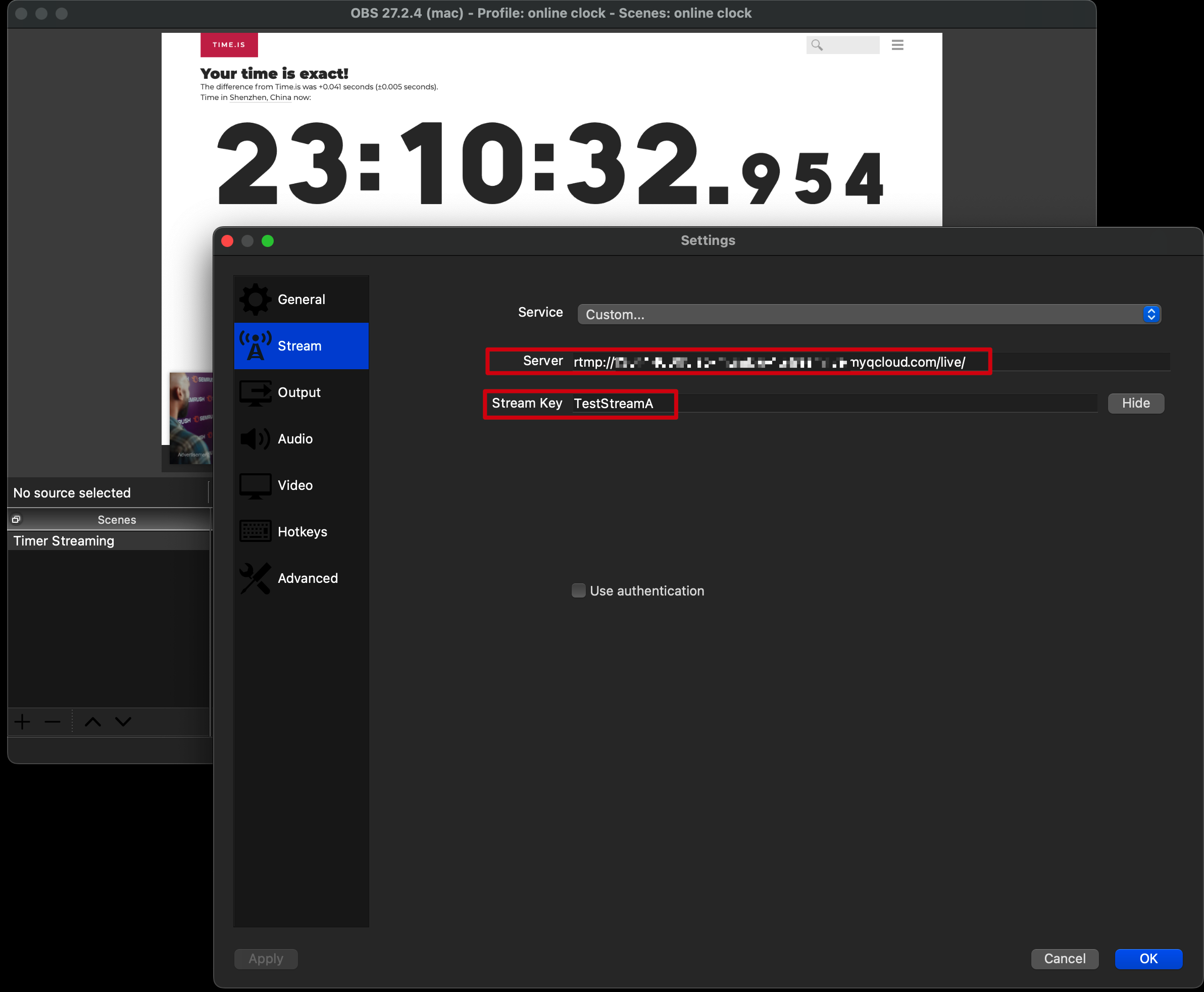 본문은 OBS를 사용하여 스트림을 푸시하고 VLC를 사용하여 스트림을 재생하는 방법을 보여줍니다. OBS를 열고 설정에서 스트림으로 이동하여 서버에 Input URL을, 스트림 키에 스트림 이름을 입력합니다.
