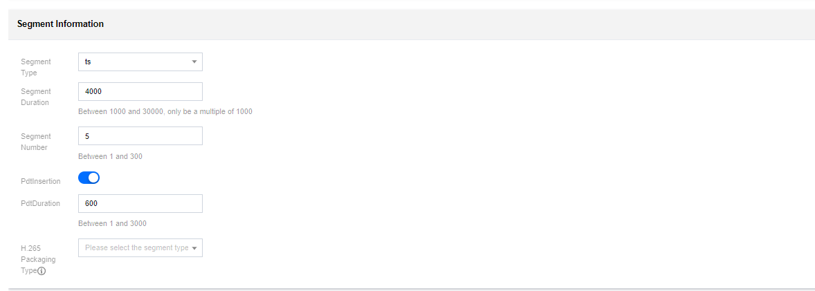 Segment Infomation 영역에서 PdtInsertion을 켜고 태그를 삽입할 간격(초)을 지정합니다.
