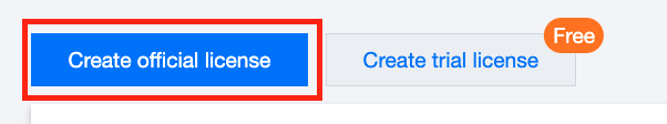 공식 License 정보는 수정할 수 없습니다. 구매한 에디션을 새 애플리케이션에 사용하려면 공식 License 생성을 클릭하여 새 애플리케이션에 바인딩합니다.