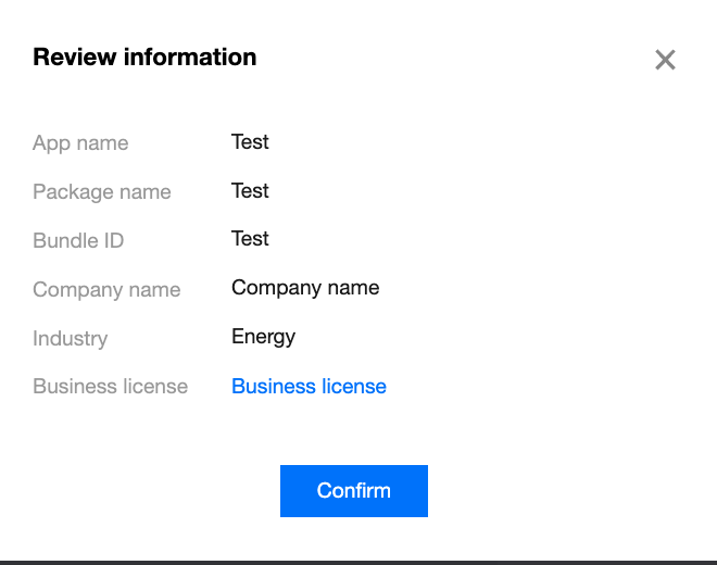 확인을 클릭하기 전에 Bundle ID와 Package Name을 다시 확인하고 앱 스토어에 제출한 것과 동일한지 확인하십시오. 제출 후에는 정보를 수정할 수 없습니다.