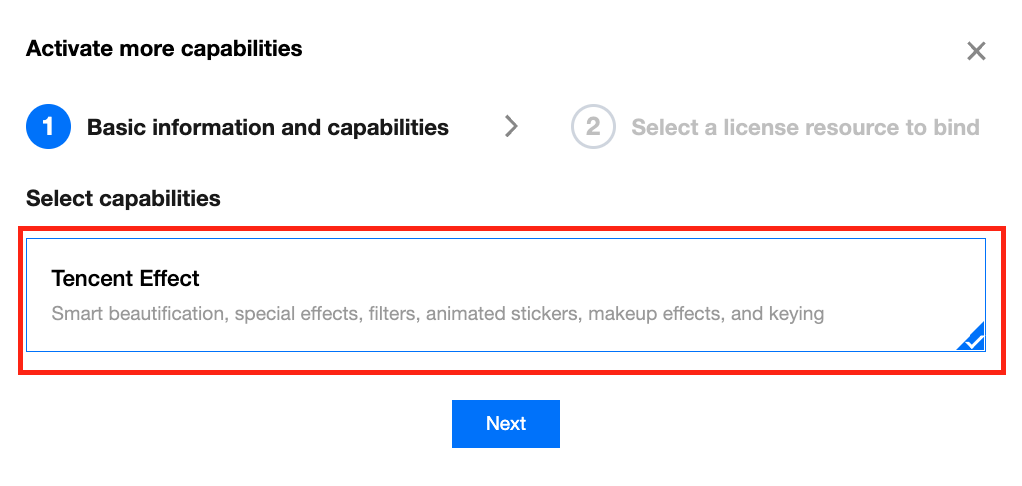 기존 Tencent Effect 평가판 애플리케이션에 새로운 기능 모듈을 신청하려면 아래 단계를 따르십시오.