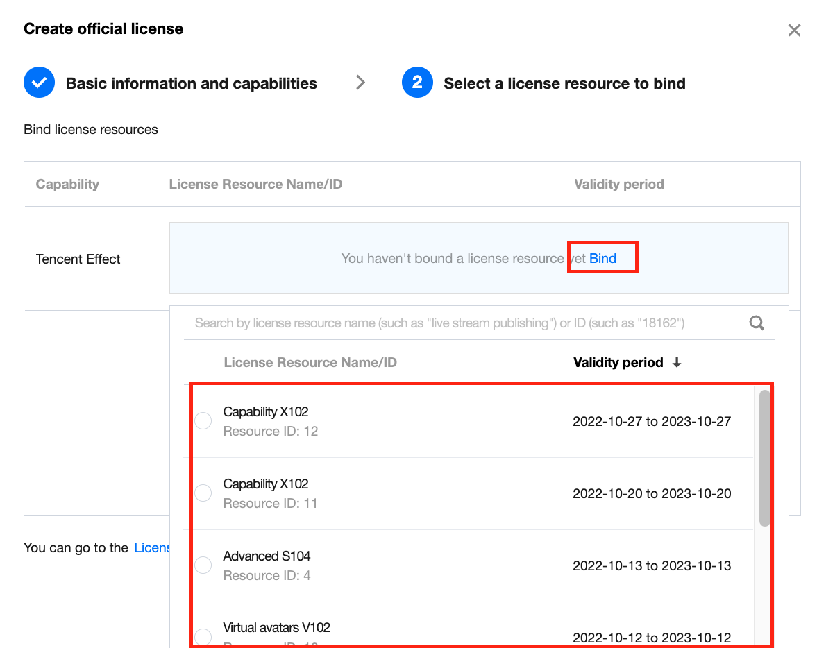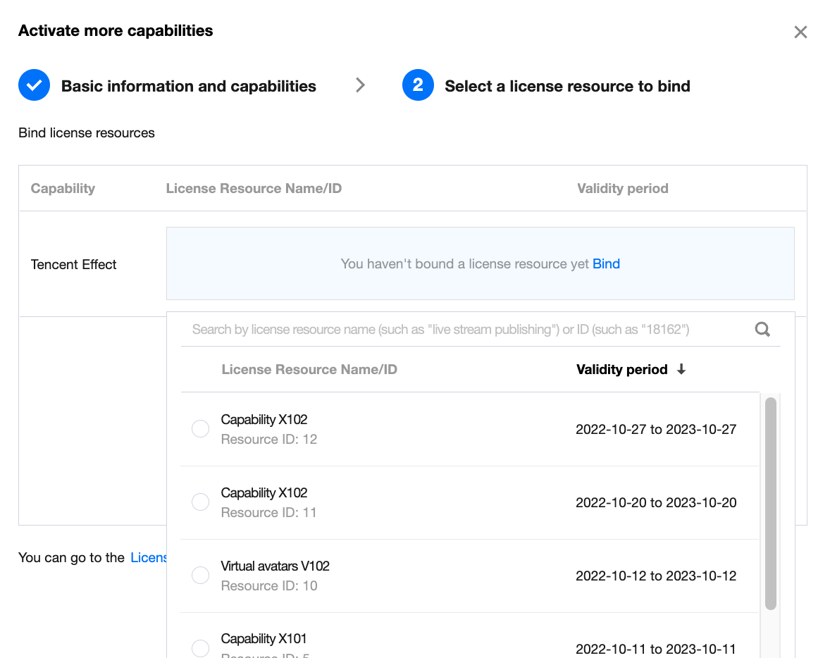 1. License를 바인딩합니다. License를 새 애플리케이션에 바인딩하거나 이를 사용하여 기존 애플리케이션에 Tencent Effect를 활성화할 수 있습니다.