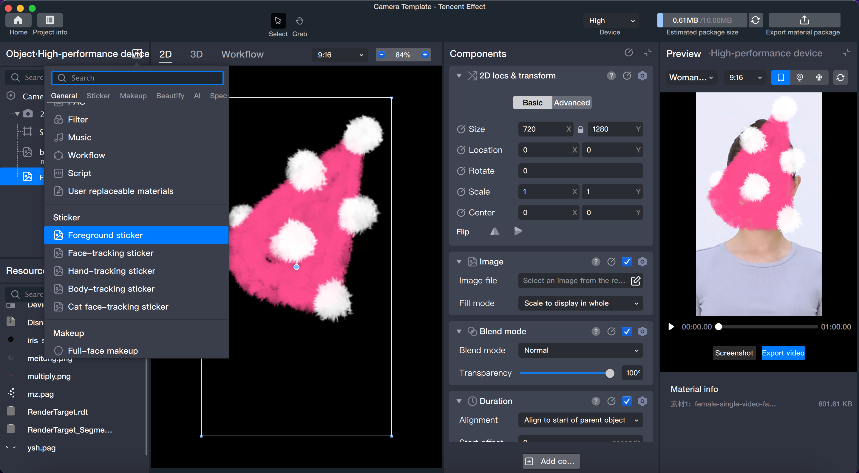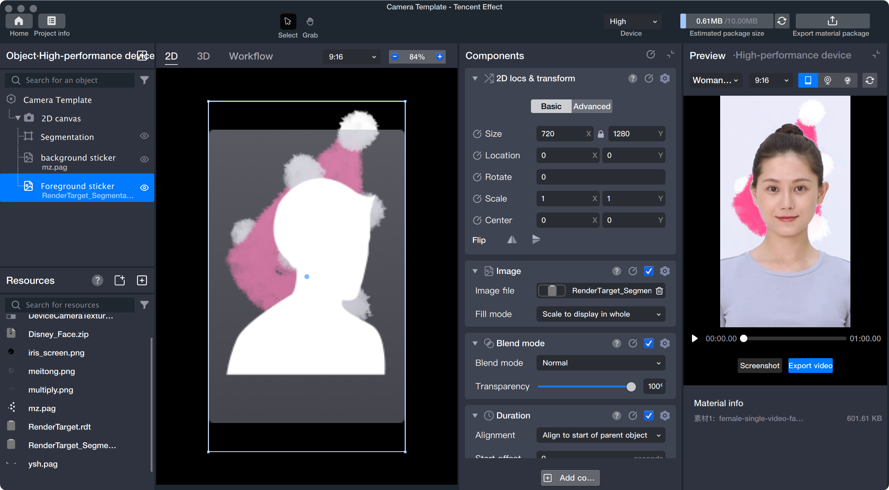 2. Select the sticker file: With the foreground sticker selected, click the image file and choose the RenderTarget_Segmentation_1.rdt file.