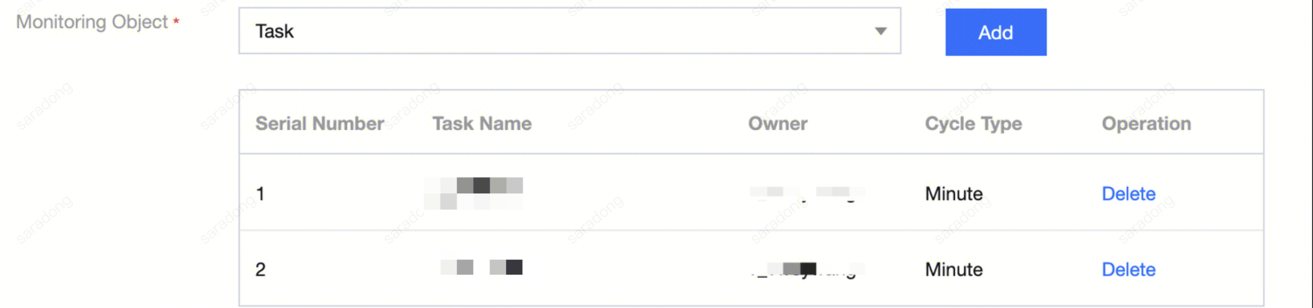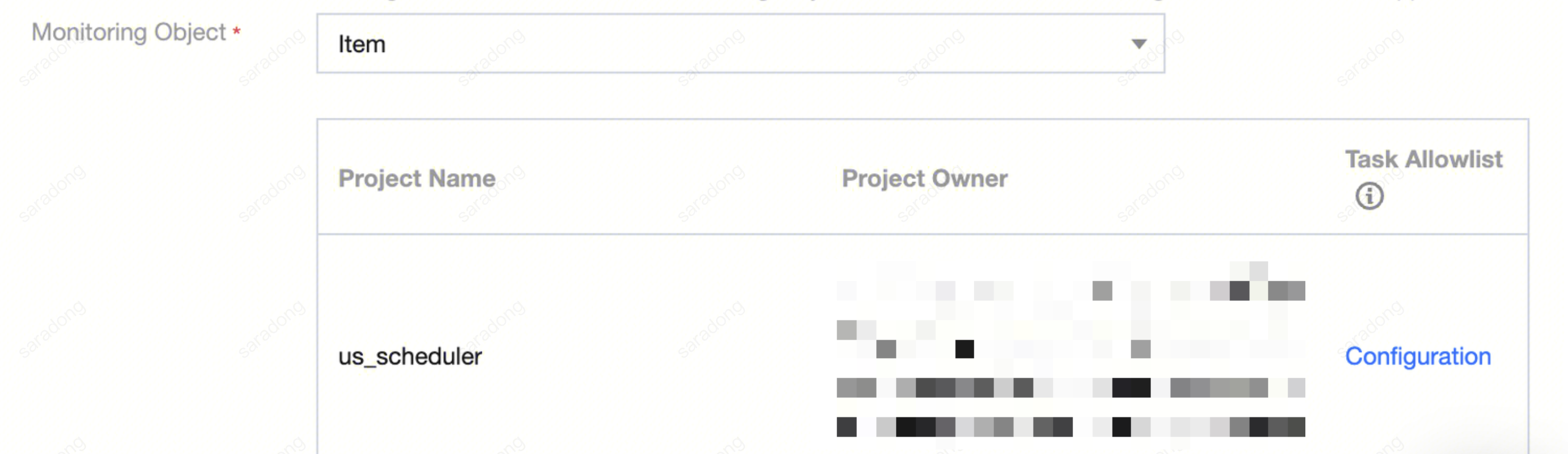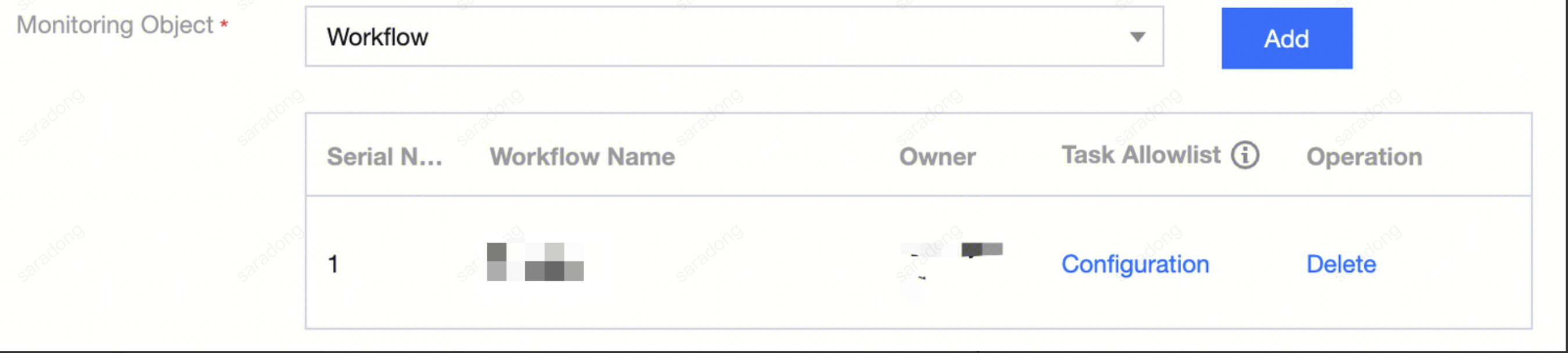Monitoring Object | Display tasks, workflows, and projects where alarm rules take effect, and check computing tasks involved in alarm rules under monitored objects. |