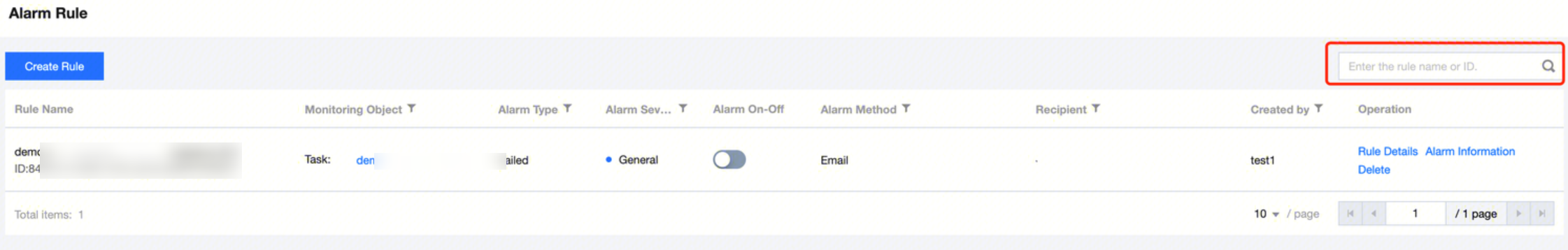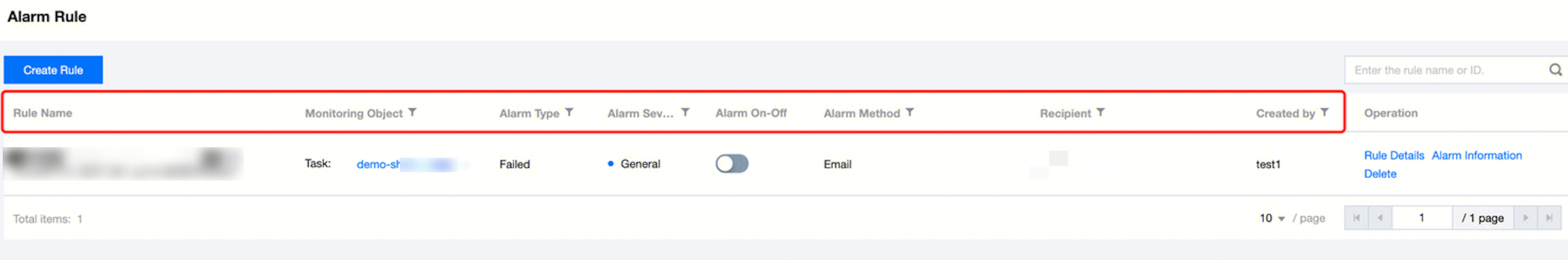 Rule Name | Displays the alarm rule that triggered this alarm information. Click the rule name to navigate to the corresponding alarm rule management page. |