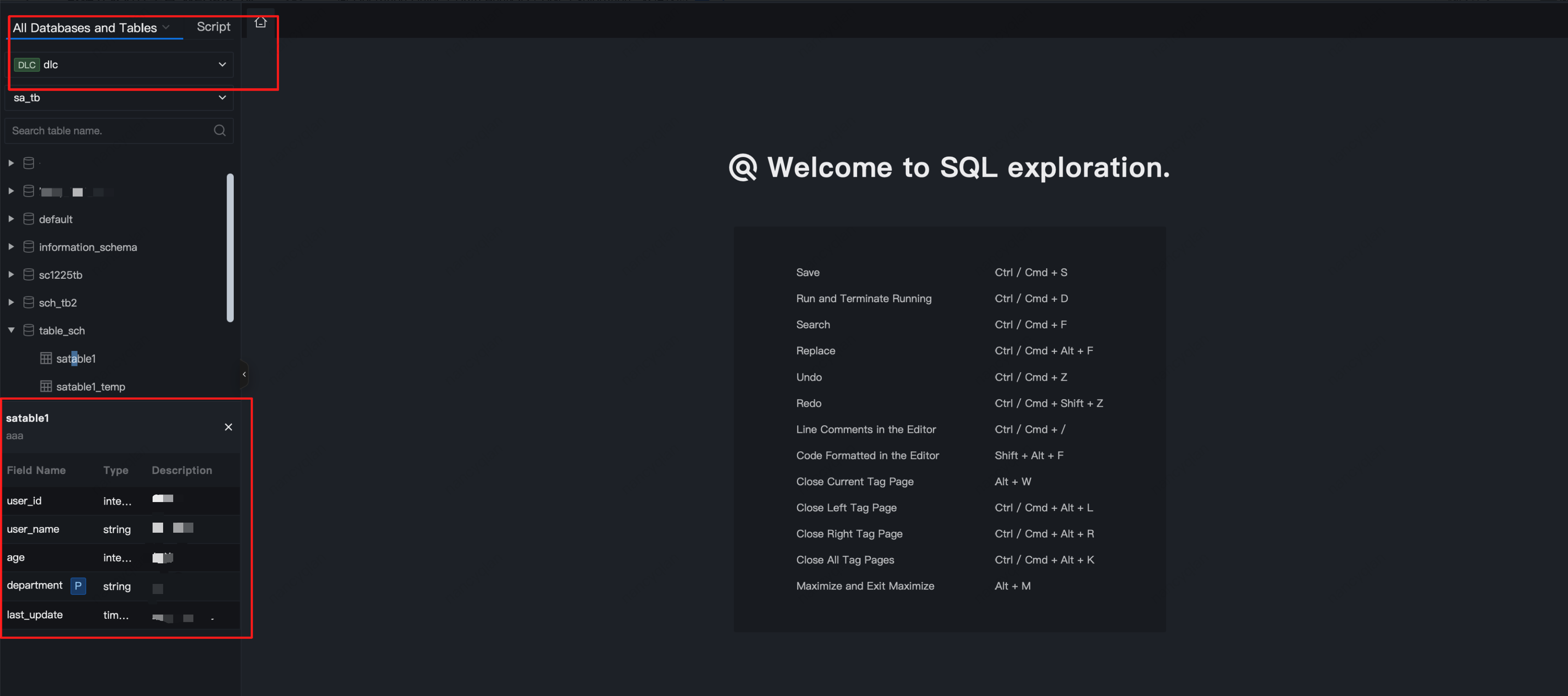2. Enter the SQL statement in the code editing area. Currently supports SQL statements including DDL, DML and DQL.