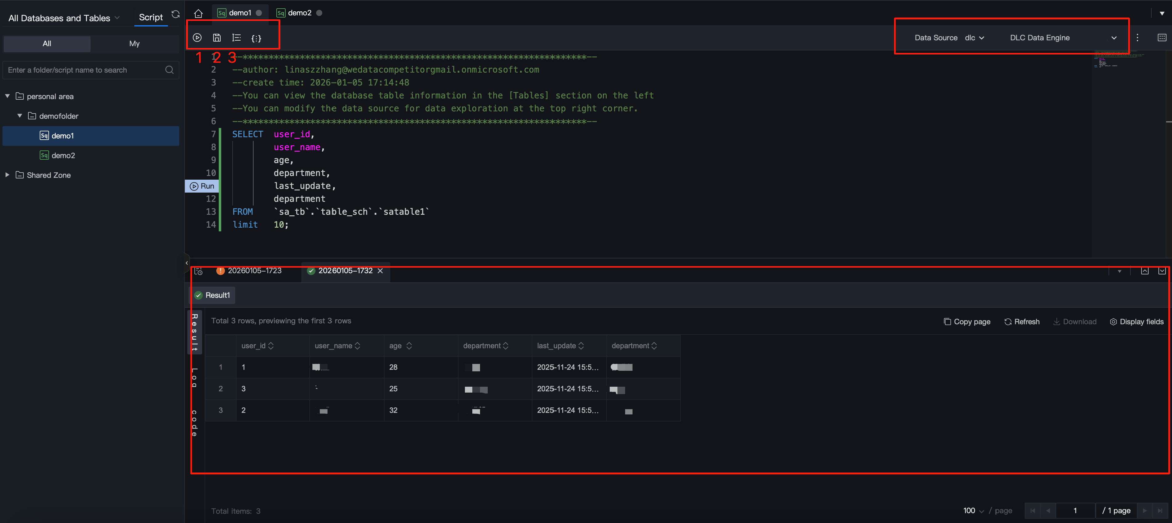 WeData SQL Exploration feature, oriented to data developers and business analysts, provides a convenient and quick data query and analysis IDE. It supports connecting to big data engines such as EMR and DLC for data exploration. Currently covered data source ranges include EMR-Hive, EMR-Kyuubi, EMR-Trino, EMR StarRocks, DLC, and TCHouse-X.