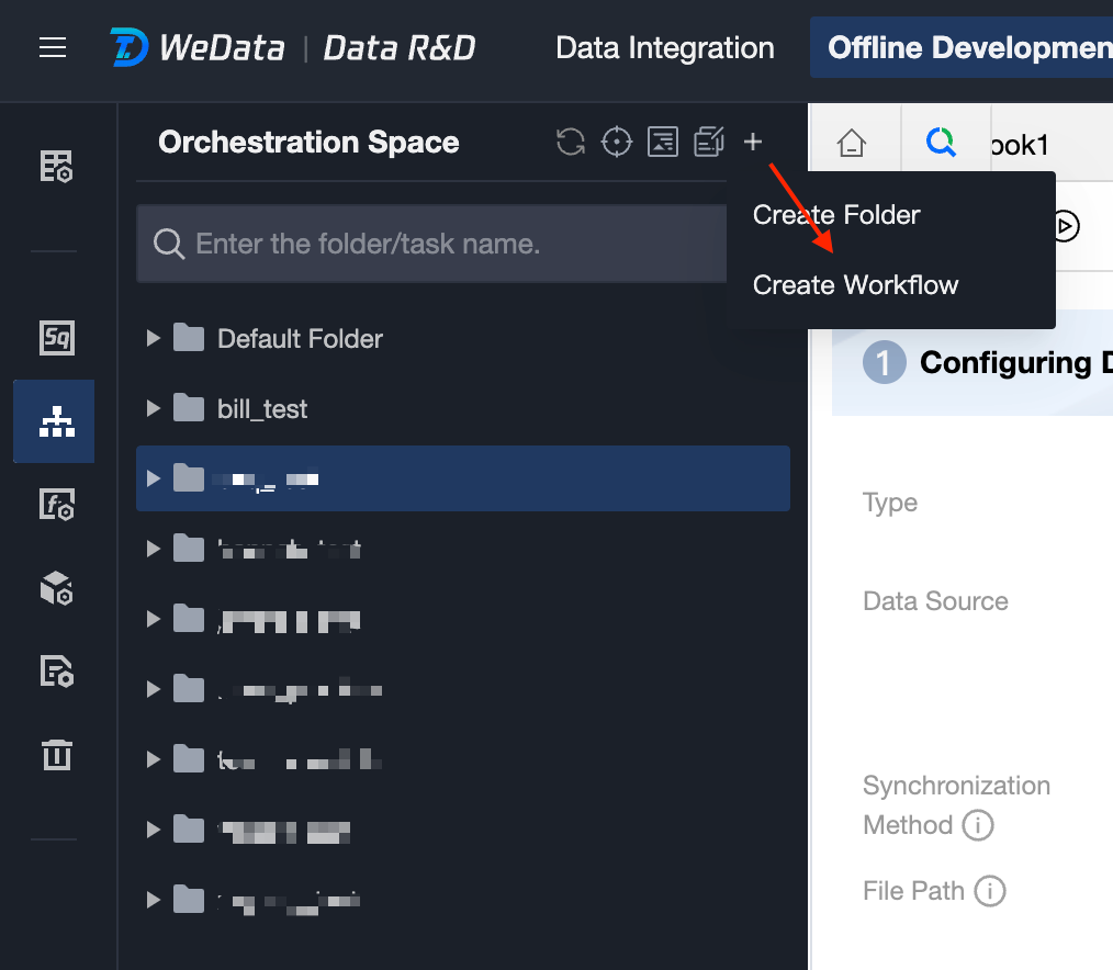 2. Click Create Workflow in the left sidebar, and configure workflow properties including workflow name and folder.