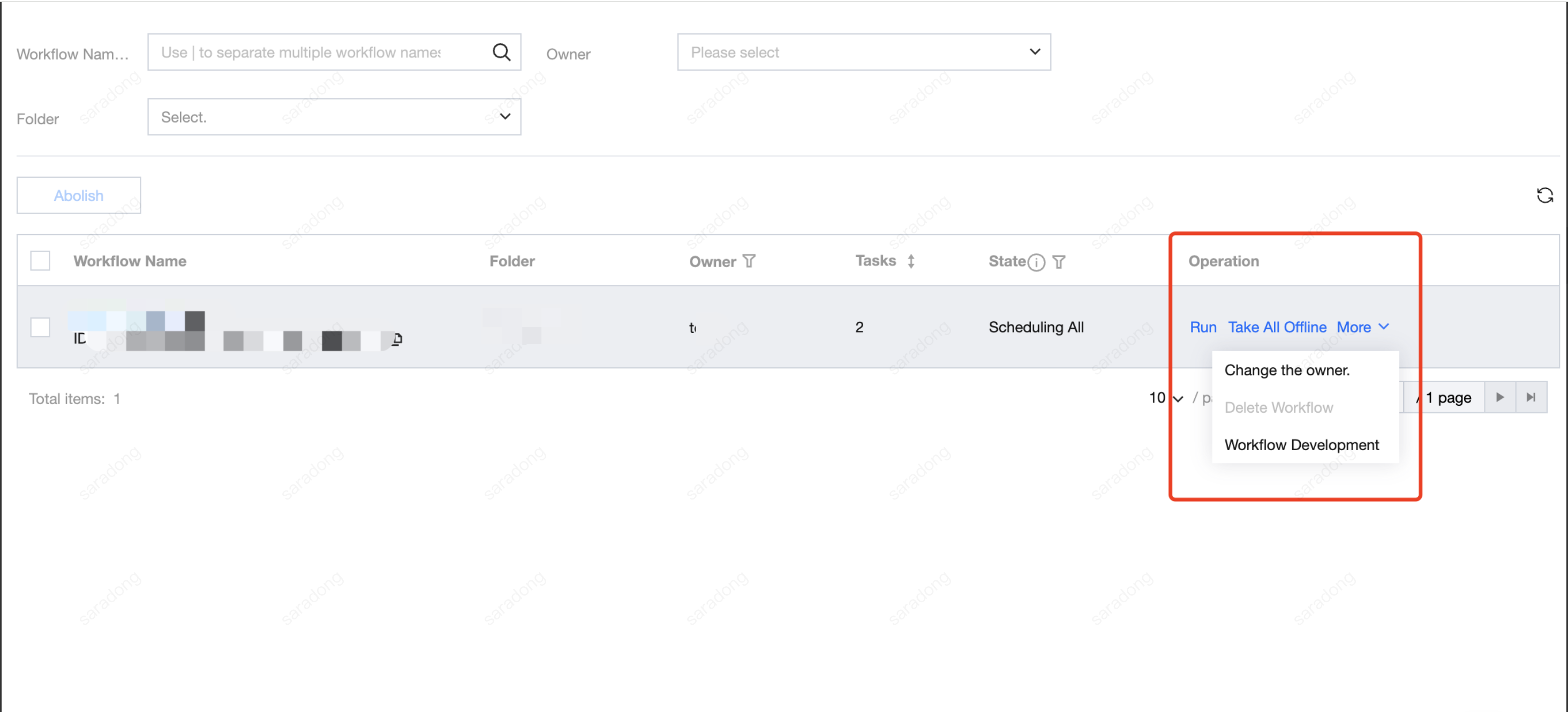 Change the owner | Modify the owner of the workflow |