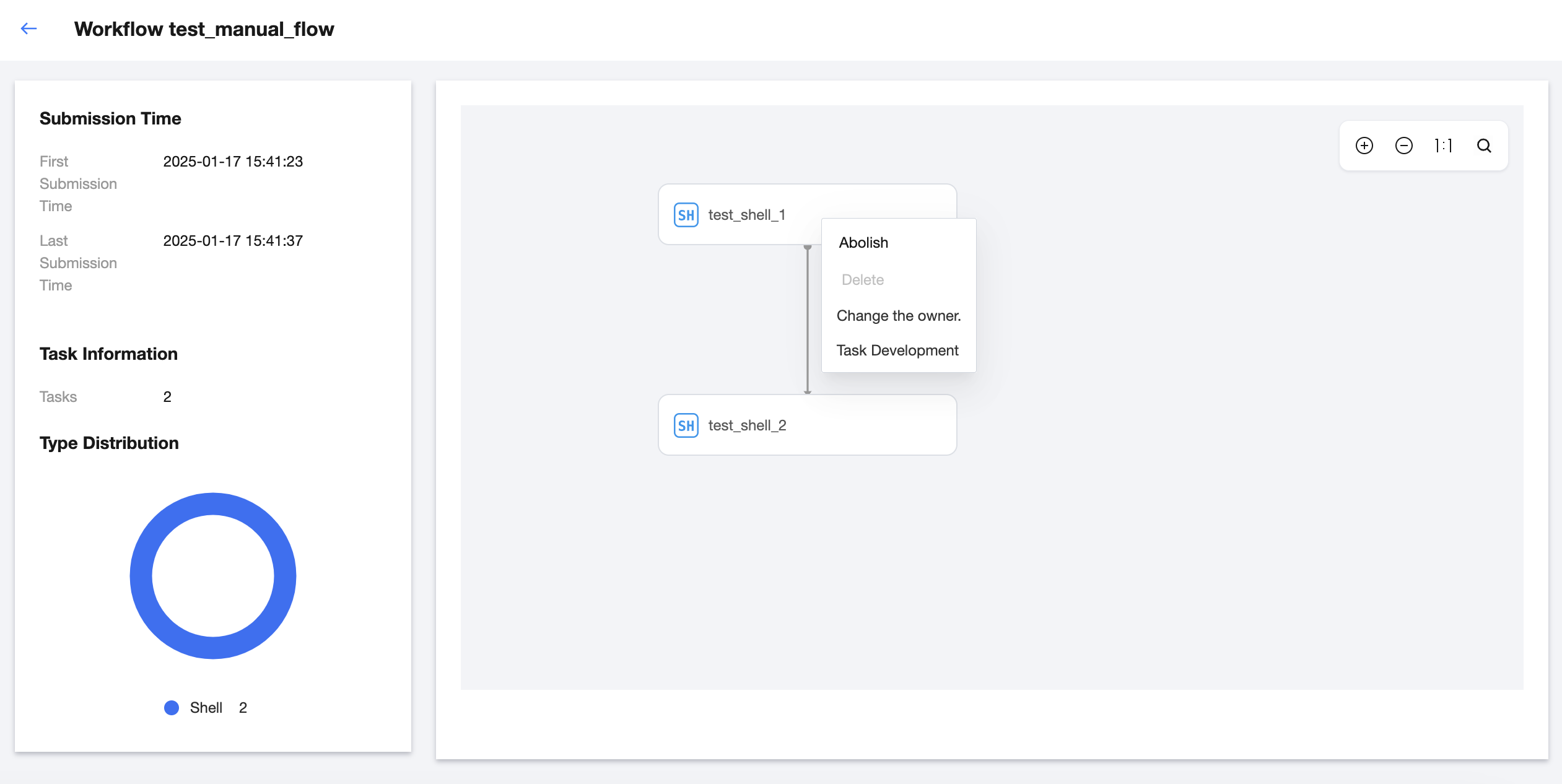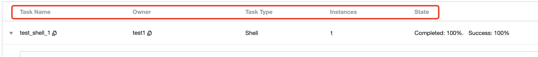 Secondary List | The secondary list is at the task level under the run, displaying task-related information. Information includes: task name, owner, task type, number of instances, status. ![]() |