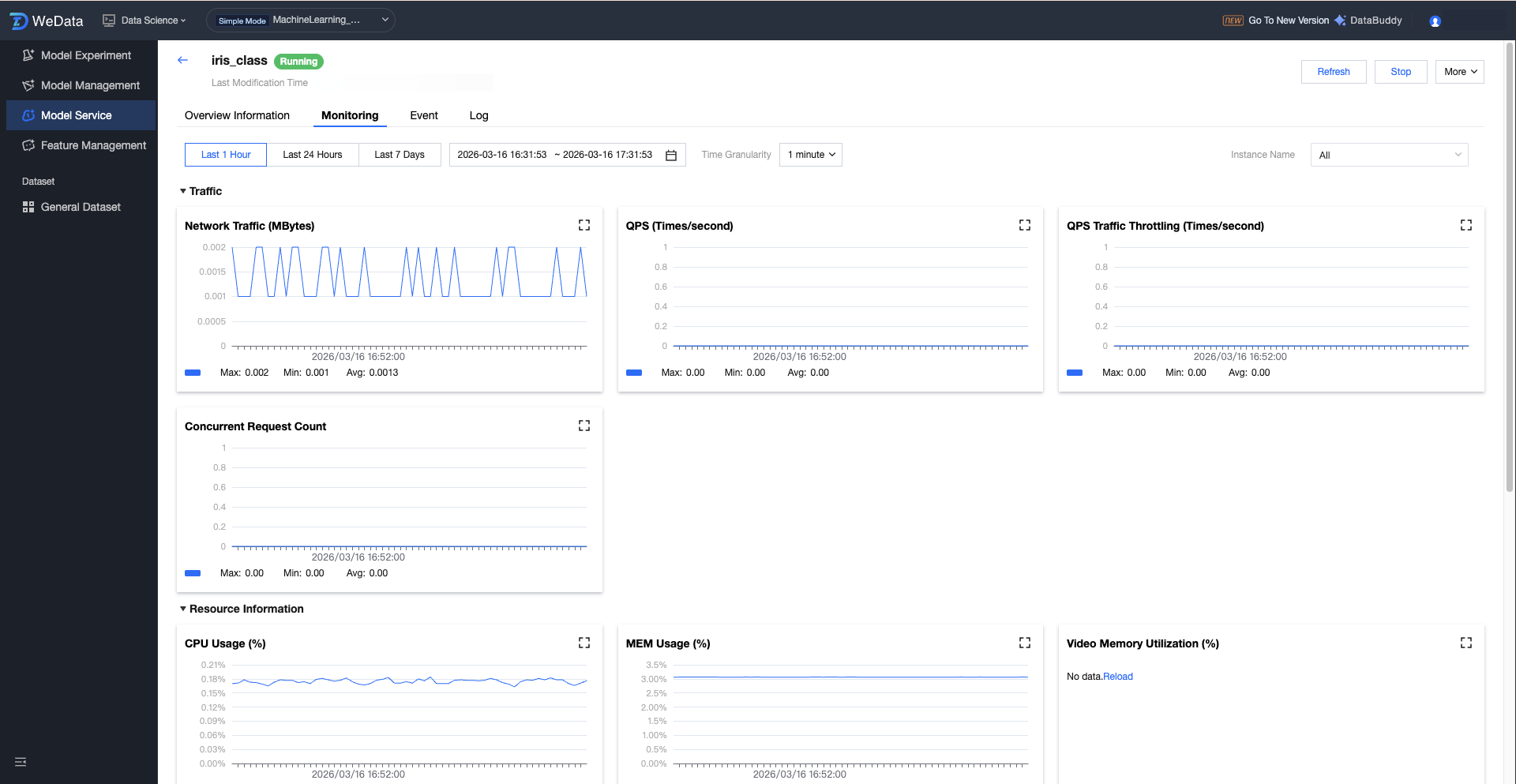 | Monitoring | View performance metrics. | Monitor QPS, number of concurrent requests, and CPU/MEM/GPU resource utilization rate. |