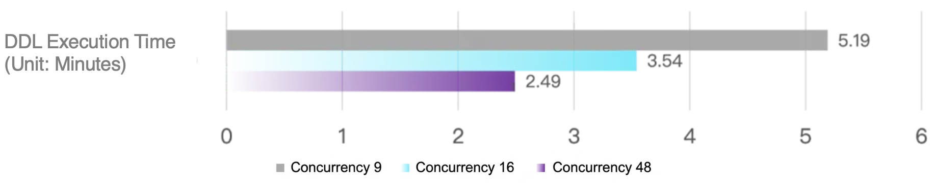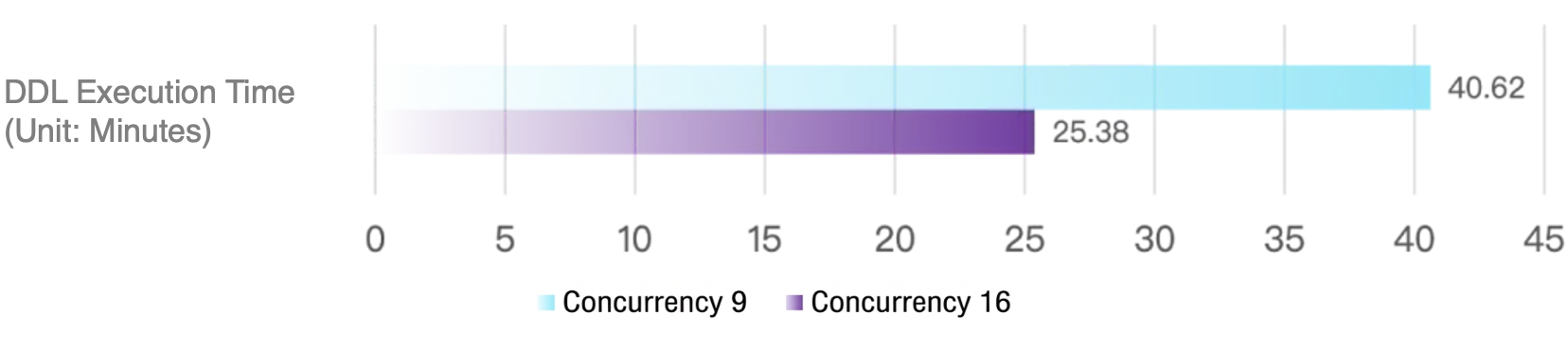 With Fast Online DDL not enabled, execution time comparison: