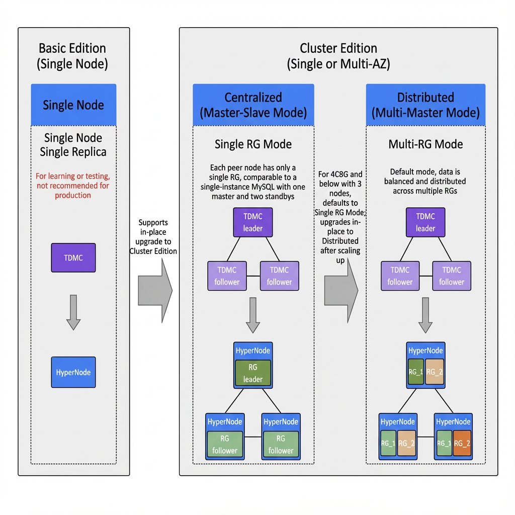 After years of technological evolution, distributed databases have transcended the limitations of traditional "sharding" scenarios, evolving from a stopgap measure for massive data sets to a core architecture supporting elastic business expansion. TDSQL Boundless achieves dynamic adaptation between database operation modes and business scales through its (Integrated Centralized-Distributed Solution): During initial business phases, the system operates with full compatibility to centralized databases, preserving development practices and Ops frameworks. When businesses enter rapid growth stages, seamless transition to distributed mode requires only configuration-level adjustments. Online elastic scaling handles traffic spikes and data expansion. This process achieves two breakthroughs: